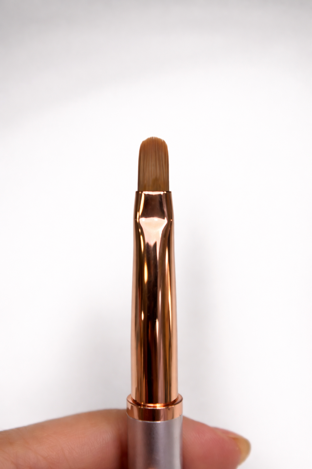 Su forma facilita el manejo del gel, ayudando a evitar acumulaciones y mejorando el control en la zona de cutícula y estructura.
